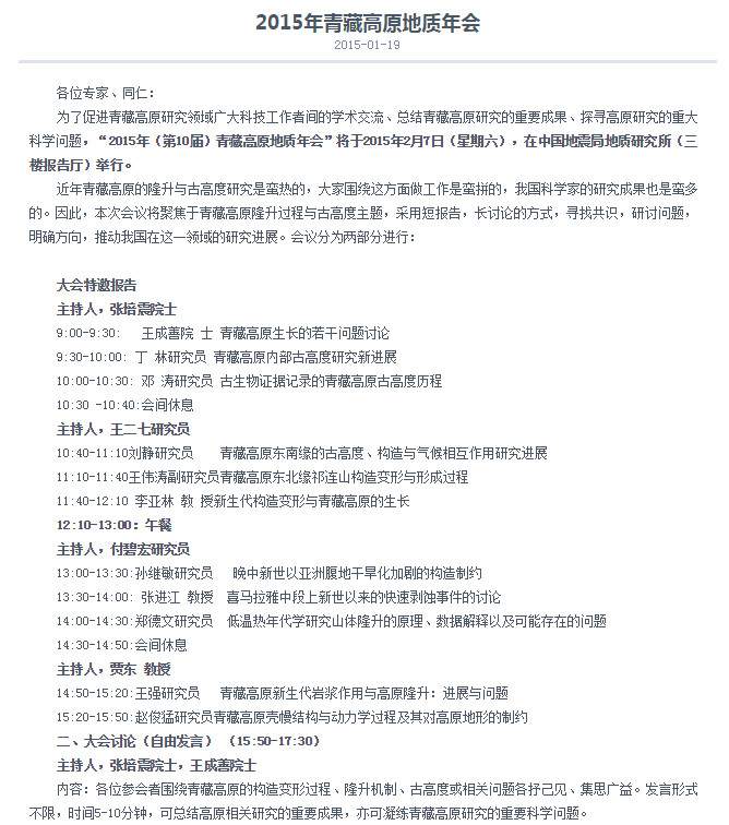 “2015年(第10届)青藏高原地质年会”将于2015年2月7日(星期六) 在中国地震局地质研究所(三楼报告厅)举行 http://www.eq-igl.ac.cn/contents/44/3140.html 20150202113740.jpg |