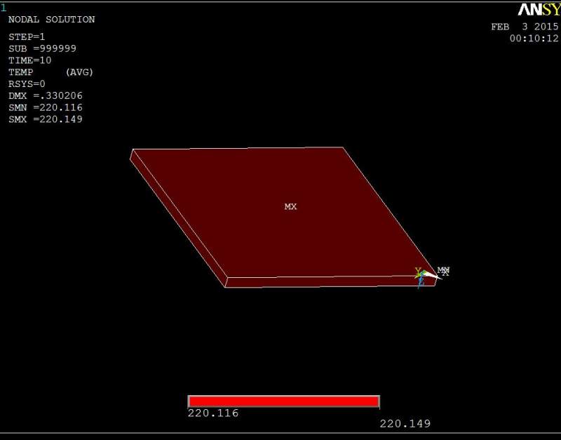 我用微米建模一个立方体100*100,单位定义密度2.23E-015,导热系数9E+07,比热6.9E+014,APLX7.8E-006,模量1.3E+005,对流系数100,为什么没有温度梯度分布,温度都是一样的,有知道为什么的么,不会命令只会GUI