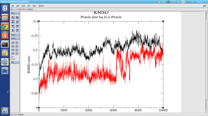 谁能看一下这个动力学跑了10ns 为啥蛋白被拉长了?是将小分子和复合物一起跑的。 另外下面的rmsd的图怎么解释?红色是小分子对小分子,黑色是蛋白质对蛋白质 2015-02-04 13:12:37 的屏幕截图.png 2015-02-04 12:32:24 的屏幕截图.png |