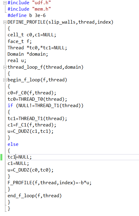 我想在一个面(流固交界面)上加一个滑移速度(流体在固体表面上的流速),通过udf编了程序,程序可以加载,但是初始化时出错,请高手帮我看看是怎么回事,谢谢