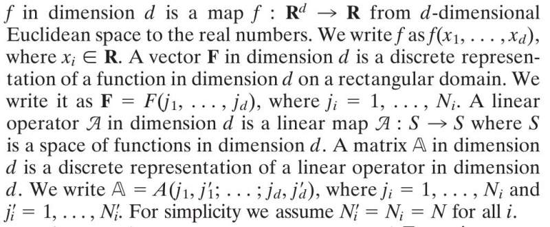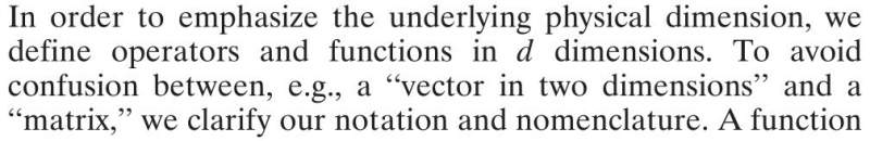 如图中所示,将函数和算子进行离散表示, 我的理解是这样的:f是多元函数,在空间离散化以后,每一点代表函数的一个值 但是,对于算子为什么这样表示啊? 学工科,数学底子不够,好糊涂啊 ![]() 2015_1.JPG 2015_2.JPG |