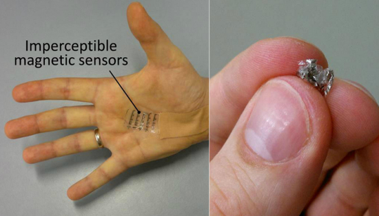 时间:2015-02-06 13:42 来源:新浪科技 在进行环球旅行时,所需要运用的远不止人类的五种官能。的确,我们的五种官能已经够让人印象深刻了,但我们唯独欠缺一种能力,那就是感受磁场的能力。 许多生物都具有这种能力,比如鲨鱼,鸟类和昆虫。因此,它们可以通过感受磁场为自己指路,包括确定实际位置、海拔和方向。对于人类来说,这将是一种极为有用的本领。 我们可以将传感器植入体内,或穿戴在身上,从而帮助我们获得这种本领。这种新型设备在德尼斯·马卡洛夫博士(Dr Denys Makarov)的带领下,由德国莱布尼茨固体材料研究所(Leibniz Institute for Solid State and Materials Research)、克姆尼茨工业大学(TU Chemnitz)、东京大学(University of Tokyo)及大阪大学(Osaka University)的研究人员共同合作开发, 然而,这种功能并非是该设备唯一的独特之处。它轻薄柔韧,容易贴合皮肤,就算是弯曲和折叠也不会损坏它的功能。 这种传感器厚度还不到2微米,每平方米重量仅为3克,因此哪怕把它放在肥皂泡上,肥皂泡也不会被它压破。它还可以经受大力折叠,半径能够被压缩到3微米之内,就好像被揉成一团废纸一样。 除此之外,该设备还能够被拉长270%,就算你重复拉伸1000次以上,它也不会因材料疲劳而破裂。我们都知道,人类手掌的动作非常频繁,该设备只有具备了这样的特性,才能被成功运用到手掌之上。 “(这种传感器)就像是……一种敏感的皮肤,你几乎察觉不到它的存在,却能通过它拥有感受磁场的能力,为你导航,并能实现无触控操作。”论文提要中写道。 “这些极轻薄的磁场传感器可被运用到多种场合,如人类的皮肤,同时为机器人、安全和医疗监控设备、消费电子产品和电子皮肤设备提供‘新的感官’。” 目前,该传感器并不向使用者提供触觉反馈,而是通过一系列LED灯传达信息。当使用者将传感器靠近磁场时,LED灯便会亮起,以此显示传感器正在运行。尽管这对人类的日常使用来说有些不便,对于机器人来说,却是一种十分理想的方式。 “如果能将磁场电子设备和其它轻便实用的元件结合起来,如太阳能电池、发光二极管、晶体管、以及温度和触觉传感器,将会让相关设备具有多种‘感官’,变得更加自主化和智能化。” 研究人员希望,他们的工作能够激发更多工作者,创造出更多的设备,使人类进一步从“第六感”——磁场中获益。 原文链接:http://tech.sina.com.cn/d/i/2015-02-06/doc-iavxeafs0882892.shtml 图为置于肥皂泡上的传感器 左为手掌上的传感器;右为被揉成一团的传感器。左为手掌上的传感器;右为被揉成一团的传感器。 |
