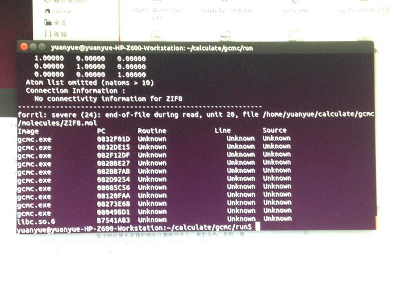 Music模拟过程中产生了这样的错误,请问有没有大神可以指导一下~~本人新手~~非常感谢forrtl:severe(24): end-of-file during read, unit 20,file /home/yuanyue/calculate/gcmc/molecules/ZIF8.mol![]() ![]() QQ图片20150209234001.jpg |