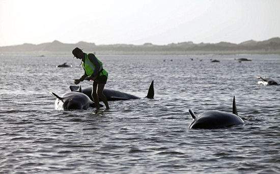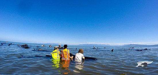 198头鲸鱼搁浅新西兰海滩 已有50头死亡
