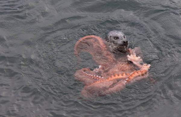 虽然海豹吞食章鱼并不算罕见,但这种场景被照相机记录下来的却很少。