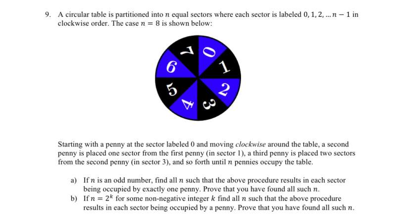 楼主可以动手算一下n=1,2,3,4,会发现当n=1, 2, 4时,可以占满圆圈,而n=3时不可以。所以有如下结论: (1)若n=2k+1, 则 占满圆周 当且仅当 k=0. (2)若 n=2^k, 则 占满圆周 当且仅当 k为非负整数。 说明如下:由于第i个棋子放在 当 |