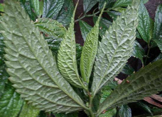 此植物在岩洞下找到的,特别喜欢阴凉环境,叶子油亮亮的样子,茎干多汁如红薯藤,听说它对无名痤疮等症状有明显效果!图片如下(叶子正反面和茎干)