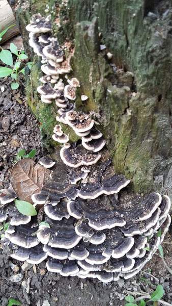此菌是春节期间,吾在广西树林一腐烂木桩上发现的,此物呈一大片状,无柄干,质地坚韧有弹性如橡胶,不容易撕开,正面黑或褐色、粗糙,后面白色有点光滑。刚开始以为是木耳,但又不象,不知为何物?请各路大神鉴定,谢谢! 树桩生长环境.jpg 菌体正面.jpg 菌体反面.jpg |