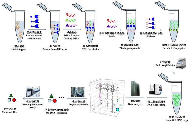DNA编码化合物库合成与筛选技术简介 DNA编码化合物库筛选是通过筛选包含大量小分子的DNA编码化合物库,可以产生具有独特结构的活性化合物,又称苗头化合物;通过对苗头化合物的优化,即可得到先导化合物。获得先导化合物是药物研发过程中最重要的一个环节。近几年来,DNA编码化合物库合成与筛选技术在先导化合物的产生、优化和生理活性研究中发挥着越来越重要的作用。虽然DNA编码化合物库技术原理相似,但是实际应用过程中无论从合成策略、化合物组成、筛选方法、测序与解码都存在较大差异。为了保证DNA编码化合物库的建库质量、化合物类药性和多样性,我公司的化合物构建策略是选择具有类药性和结构新颖的小分子作为化合物库的骨架来构建中等大小的库,而非使用传统的组合化学四段式方法构建超级大库。截止到目前为止,我公司的研发团队已经合成了约含有13亿个化合物的小分子和大环DNA编码化合物库,并成功对多个生物靶标产生了苗头/先导化合物。 我公司的DNA编码化合物库合成原理: 传统的高通量筛选技术进行靶点筛选,已成功地发现了大批的临床用药。随着人们对疾病认识的不断加深,越来越多的用于治疗的生物靶标被发现,并成为现代医药发展的中流砥柱。然而,这些新颖的生物靶标在传统的高通量筛选上具有很大的局限,比如:蛋白-蛋白相互作用靶点、G蛋白偶联受体等无法使用传统的高通量筛选;再比如:由于筛选原理的局限,传统的高通量筛选很难发现全新机理的化合物(例如激酶的变构位点的抑制剂)。 DNA编码化合物库进行筛选与传统的高通量筛选方法有很大的不同。首先,DNA编码化合物库基于亲和筛选,将纯化的重组蛋白和DNA编码化合物库进行孵育,直接找到与蛋白具有结合力的苗头化合物,而非像传统筛选方法通过蛋白的功能变化来识别苗头化合物。其次,亲和筛选得到了苗头化合物之后,我们会重新合成不带DNA标签的小分子化合物,使用这些重合成的不带DNA标签的小分子化合物进行后续的活性验证,保证得到的苗头化合物具有生理活性。第三,筛选DNA编码化合物库筛选是将蛋白和整个化合物库进行孵育,是数量巨大的化合物同时筛选而不是传统的单个的化合物依次筛选,这种方式的筛选具有明显的速度和成本优势。 来源网站:http://www.hitgenbiomed.com/news/view.php?fid=82&id=5620 |