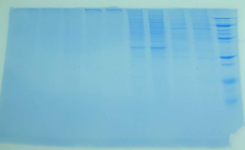 而且跑到低分子量之后的条带就很不清楚了,基本上变成了一团,有什么解决的方法么。