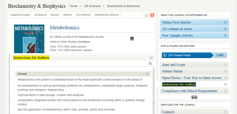 有没有人知道metabolomics的Instructions for Authors怎么无法查看呢?急啊!已有1人参与