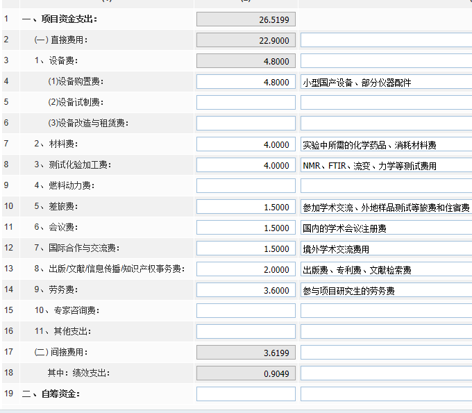 好像要求预算为小数点后两位,另外仪器、会议费偏高,可以把试验费用提高些,让评审专家觉得你会认真做事。不知可否?