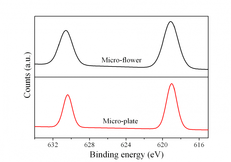 求助:不同形貌的两种样品(花状和片状),在xps的表征过程中,发现相同元素的峰,片状结构的峰比较尖锐,该怎么解释这个现象?见下图。XPS峰的半峰宽与哪些因素有关?