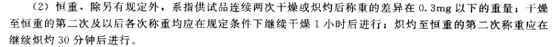 在600±50℃下炽灼一个合适材质的坩埚(例如,二氧化硅,铂金,石英,或者瓷质)30分钟,在干燥器(硅胶或其他合适干燥剂)中冷却,精确称量它的质量。精确称取☆1~2 g或☆个别文献特定说明质量的样品,放在之前冷却后的坩埚中。用少量(通常1 mL)硫酸润湿样品,然后在尽量低的温度下慢慢加热,直至样品完全烧焦。冷却;然后☆除非个别文献另有说明☆又用少量(通常1 mL)硫酸润湿;缓慢加热至不再有白烟生成;再在600±50℃下炽灼,☆除非个别文献另有说明☆直至样品完全碳化。确保在整个程序中没有火焰生成。在干燥器(硅胶或其他合适干燥剂)中冷却,精确称重,然后计算残渣所占百分比。————以上为百度炽灼残渣条目下米国药典的方法,恒重温度和灰化温度是一样的。PS:我个人觉得,水沸点100度,就算是结晶水也不过200度,要怎样才能不除尽水··· |