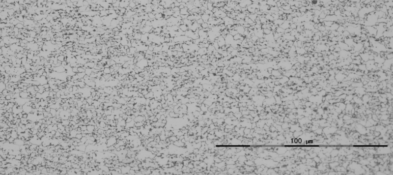 我个人理解:粒状组织。铁素体边界上的黑色析出应该是三次渗碳体,某些小黑块是珠光体,但是在铁素体基体上有些小黑点,会不会是M-A岛? 目前的问题:该组织的力学性能不稳定,屈强时高时低,感觉可能有点退火不足,但从组织入手无法判断原因。 本人才疏学浅,欢迎大家讨论! HSLA.png |