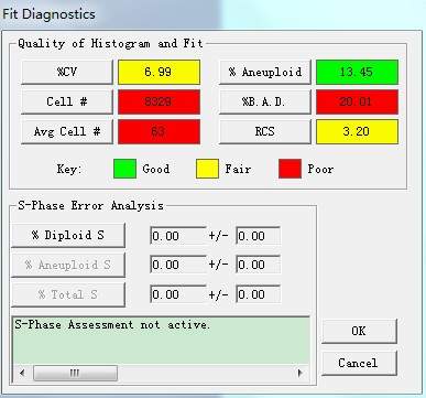 这是我做完细胞周期的流式后用modifit分析的图,但我最后不知道该怎么去看这个图,整个复制周期描述为G0/G1,S,G2/M。在图上我怎么弄呢?diploid和tetraploid到底选那部分啊?还有那个诊断图说明我的数据可不可以呢?请高手赐教啊! 分析图.jpg ~U6H}M3KGR1LX%JZ7{3)T4T.jpg |