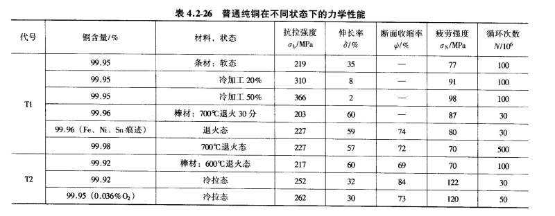 常温下紫铜的力学性能见附表(中国材料工程大典,第4卷)