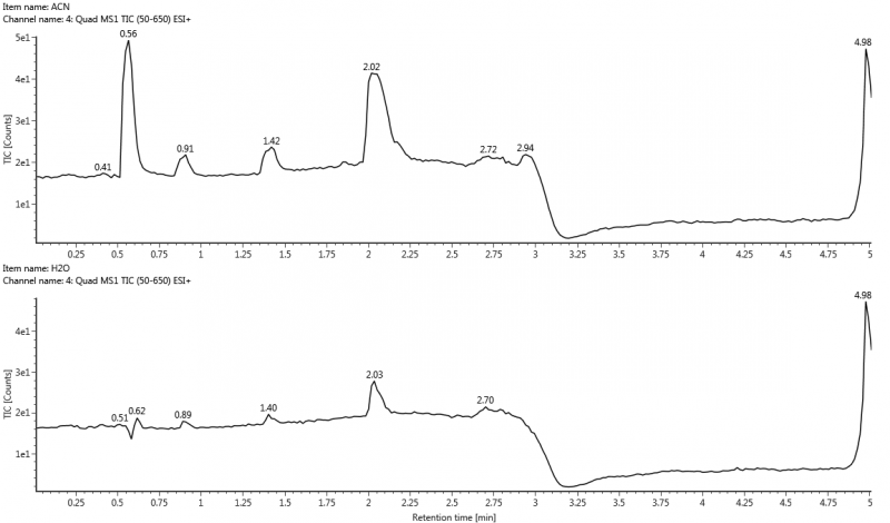 液质联用 总离子流色谱图中 空白溶剂出峰