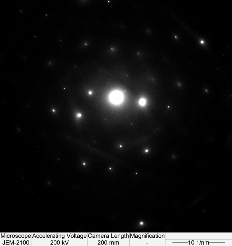 图中是TEM拍下的不锈钢的电子衍射花样,我对照常见晶体的标准电子衍射花样,没有找到对应的。求助虫友们,能不能帮我标定一下?它是什么组织的?