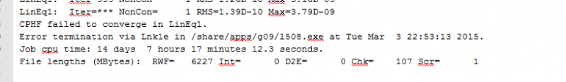 高斯程序优化运行过程中终止之后续算,为什么总是无限循环无法收敛呢
