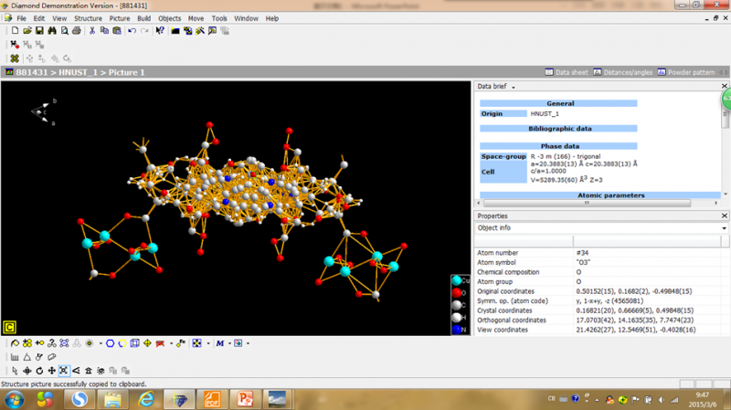 大家好,附件中HNUST-1的cif文件(文件来源:10.1039/C3CE26177H) 不知为什么,我在用diamond 3.2画这个图的时候,先画出一个Cu,但后面用原子生长的方法画不出Cu的paddlewheel状结构,并且结构显的很无序 请各位大神能否给个解决办法呢,急求,在线等,万分感谢了! picuure-1.png picture-2.png |