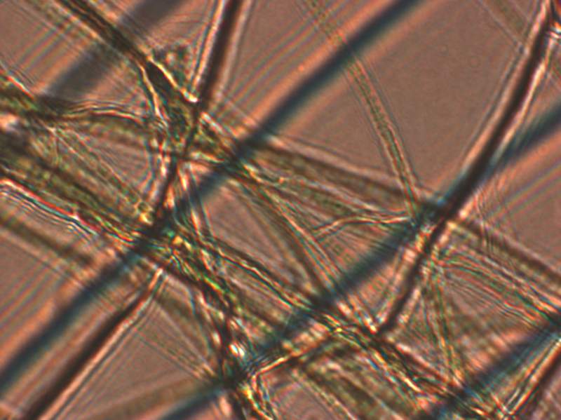 水中长的一些绿色的微生物,是片状贴壁生长,取了一些做了下镜检,油镜下拍了一张,绿绿的感觉像是藻类,但是这么长的菌丝体感觉又像是霉菌的菌丝。