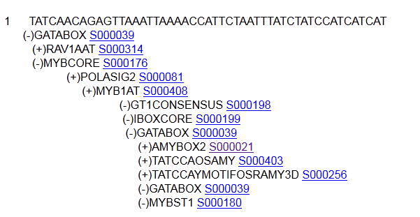 我找到了一个基因的启动子序列,用PLACE分析顺式作用元件,结果是这样的