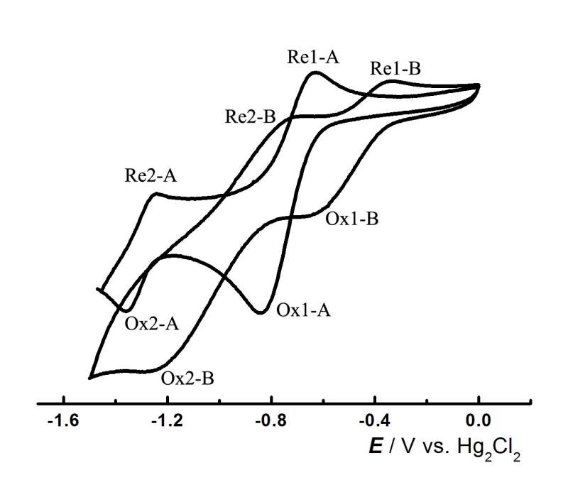 图片如下,曲线B是我原始物质的循环伏安曲线,是一个双电子氧化还原过程,曲线A是经过环糊精包结以后的循环伏安曲线,从曲线上可以得出哪些结论以及优劣呢?可逆性如何?或者但从第一个还原态可逆性和第二个还原态可逆性如何进行比较? (曲线是由正向负扫面,我的原始物质先还原后氧化) 本人不是学电化学的,对这方面不是很懂。还望高手赐教,在此先谢谢了! Graph3.jpg |