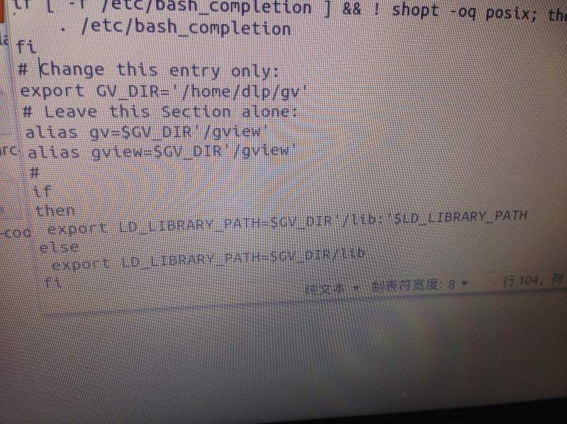 你的.bashrc中if then部分有错误,原帖中好像就是错的。 vi .bashrc # edit the file .bashrc export GV_DIR=/home/wuy/gv/ export LIBPATH=/home/wuy/gv/lib export LD_LIBRARY_PATH=$LD_LIBRARY_PATH:/home/wuy/gv/lib PATH=$PATH:/home/wuy/gv/ #end 然后 source .bashrc |