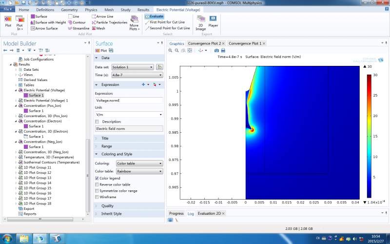 我利用comsol在做放电仿真,其实方程很简单,就是泊松方程耦合了三种正负离子还有电子的扩撒方程