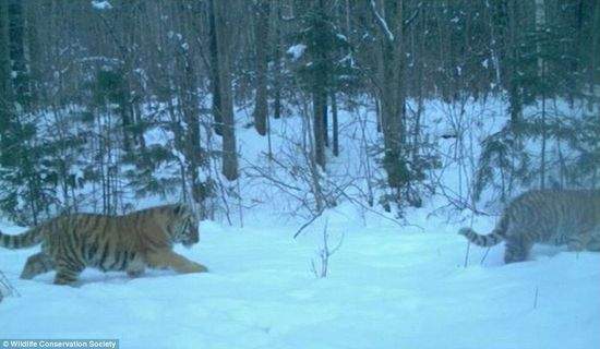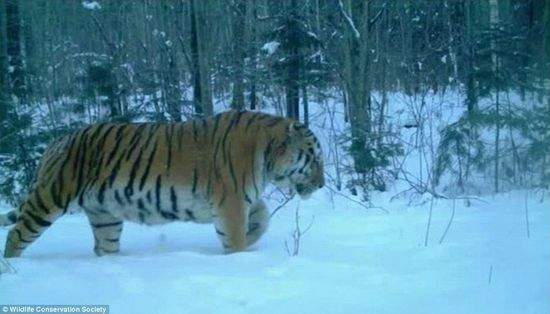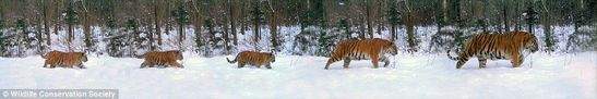 实拍东北虎爸爸带领"妻子"及3个宝宝穿越雪林已有4人参与
