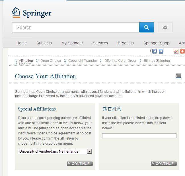 今天编辑部发来要我们确认一些OA 版权转让事宜,让我们上网站选一下。结果第一个就遇到问题了,这个special affiliation随便选一个没关系吧?(与他们有关吧,这些都是负责参与和管理杂志的一些机构吧)如图