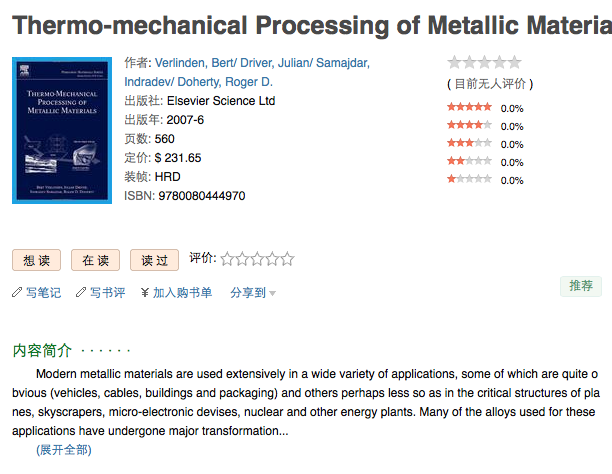求助电子版图书Thermo-mechanical Processing of Metallic Materials 已有1人参与