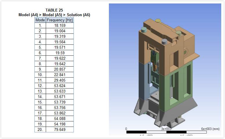 小木虫上的大神们,我用workbench做了压力机整体机身的模态分析,求得的各阶频率中,有连续频率特别相近(具体见图片),不知道为何,求赐教!!!