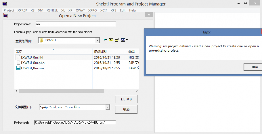 shelxtl 安装完在使用的时候出现Warning:no project ... ,WIN7 (32位)