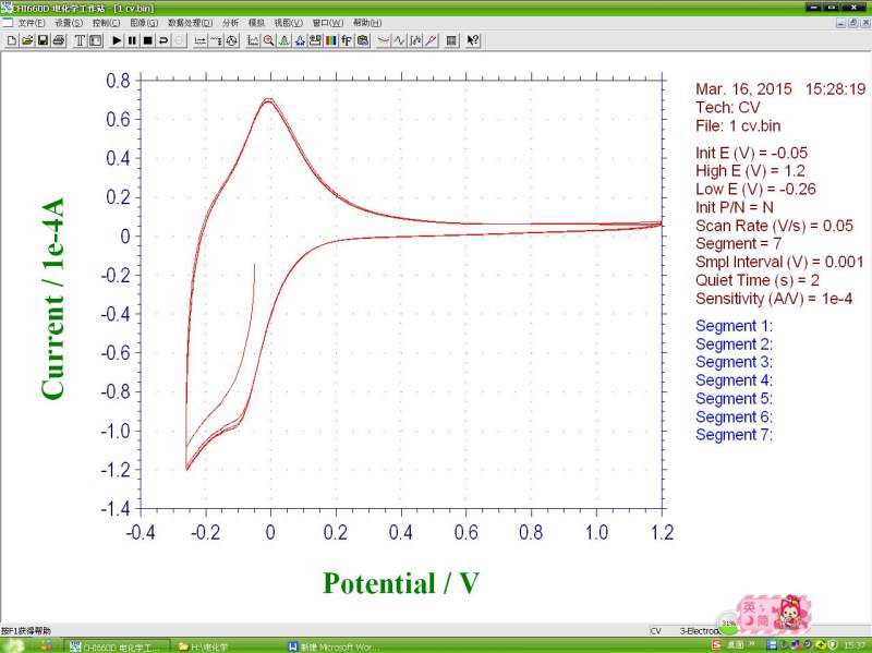 如下图,我在硫酸中扫cv,对电极是Pt丝,参比是饱和甘汞,和在硫酸+甲醇中扫出来的cv基本一致,都和下图差不多,不太明白这是为什么?