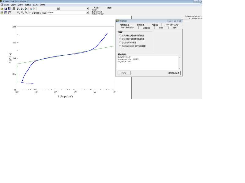Cview2 氧化物阳极的极化曲线,求Tafel斜率,拟合参数有Ba,Io,Eo分别代表什么?已有1人参与