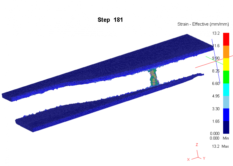 Deform-3D模拟 45号钢 速度设置较慢10mm/s 网格125000个 断裂准则C&L 下面是181步应力应变图 现在还没有断 会不会是设置有问题 每次大概算到80-120步就结束了。。。 感觉变量就换了速度啊,可是我设置的按每步距离算,不是按时间算的,所以应该没有影响啊 求大神解答 1.png 2.png |