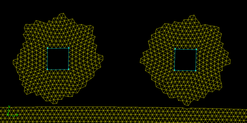 用Gambit进行三角形网格划分时出现网格不连续的情况 如图中所示 不知道为什么 求解。。。