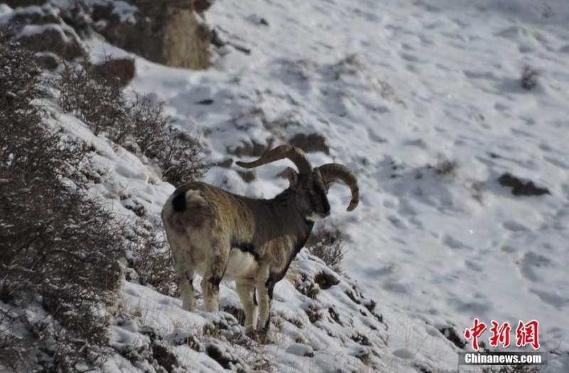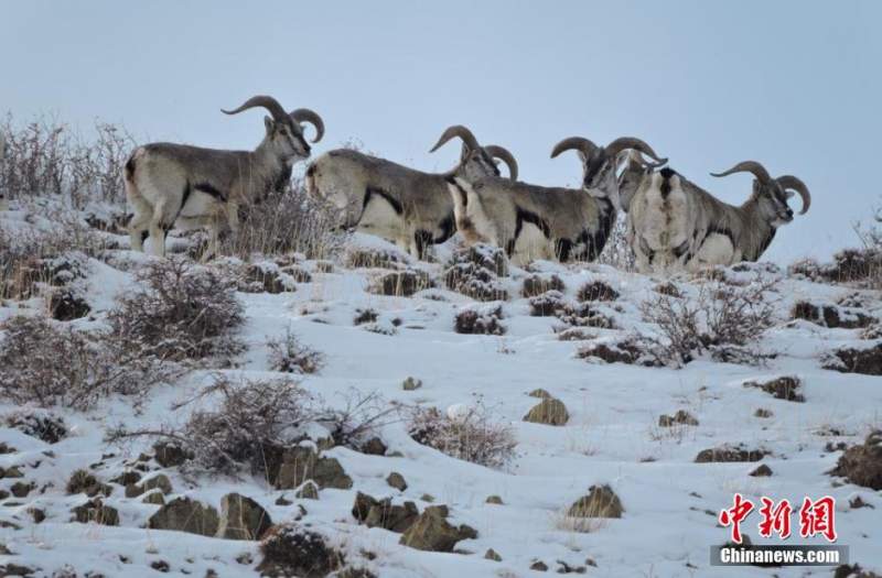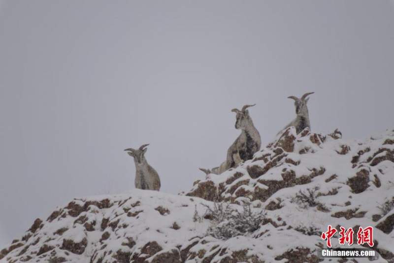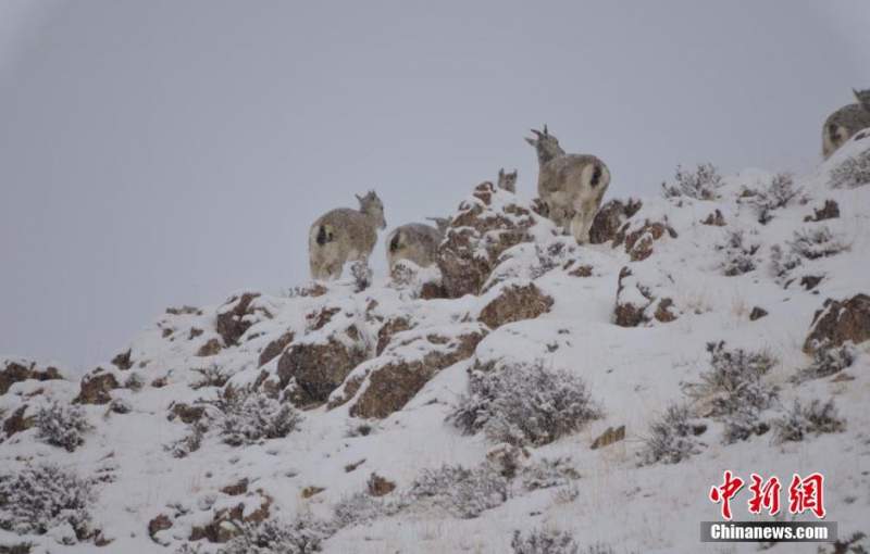 甘肃肃北现珍贵物种岩羊 攀岩跳跃似“精灵”