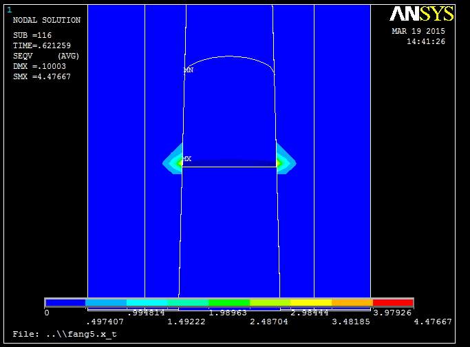 在ansys中,用二维首先对挤压做了仿真,如【正确的图】所示,提取应力值与实际相接近,