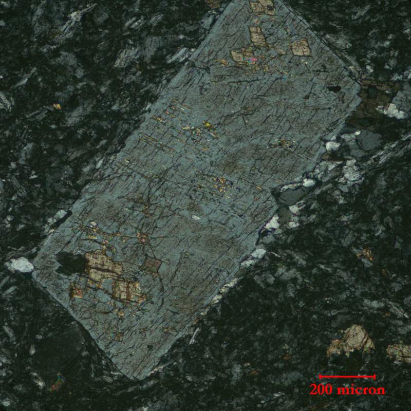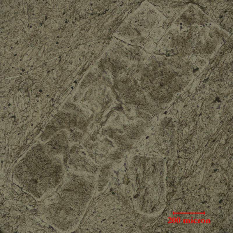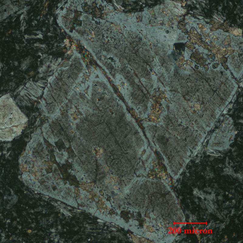 擦,我竟然不能上传附件![]() http://yunpan.cn/cZ2fdXku4ZKzd (提取码:240f) 这是标准的微斜长石,可见格子状双晶 但是你的样品中,没有发现明显的微斜长石,但是有些可能像 也可能就是成分偏向于微斜长石,而未显示光性特征 |