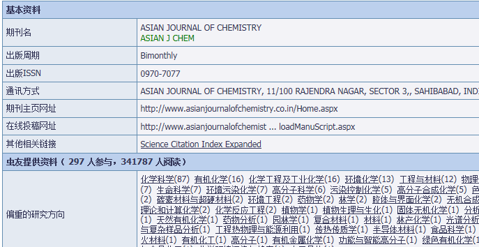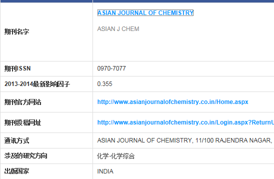 Asian Journal of Chemistry 2014年还是不是SCI?