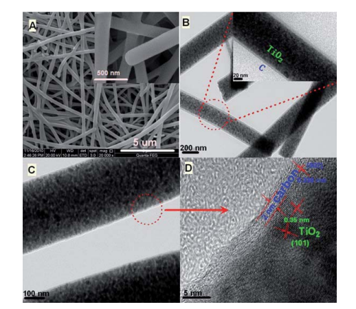 TiO2@C 壳核结构纳米纤维的可控合成及其可见光活性