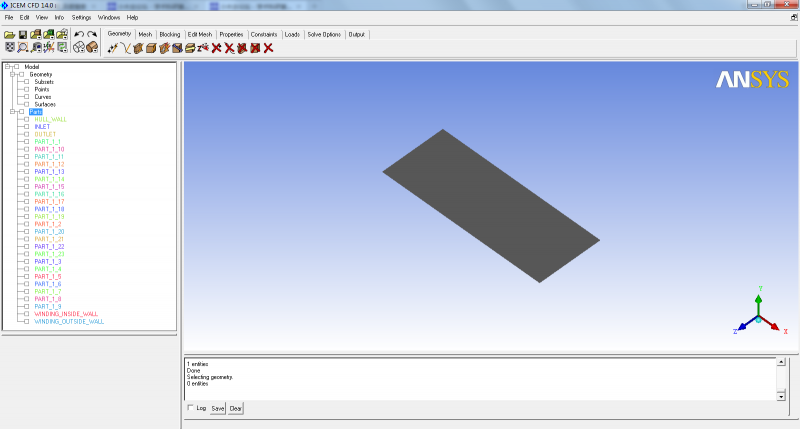 大家好,我在学习ICEM CFD,某次操作后发现模型上出现了一个莫名其妙的灰色面,即使所有的Geometry和Parts都不显示,灰色面依旧存在,有没有人知道是怎么回事啊?