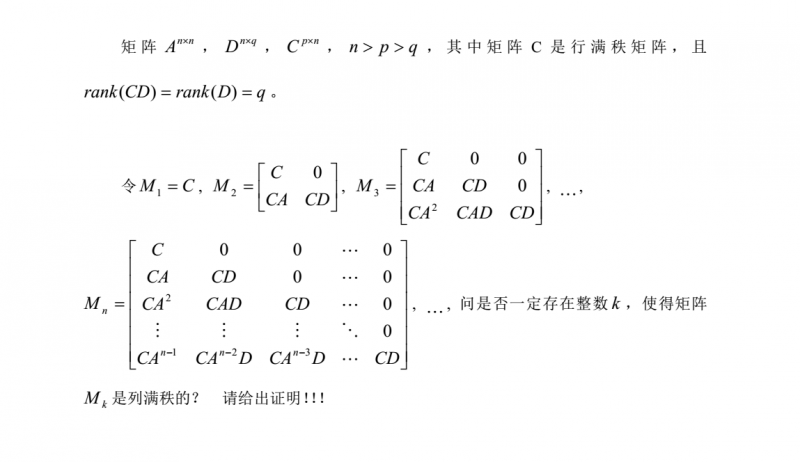 下列构造的矩阵中是否一定能找到一个矩阵是列满秩呢?已有1人参与