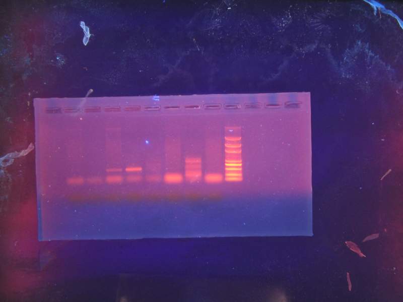 引物的TM值一般是32℃,其实预想的结果是每个通道都能有多条清晰的条带。