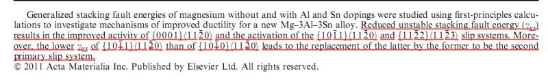 前段时间看了不少的关于层错方面的资料,大体上都是认为层错能低,位错难以束集,交滑移不易开动。但是为什么文中划线的地方反而说降低层错能,反而激活了一些基面滑移以及其它的滑移呢?这岂不是矛盾啊?求大侠解释 111.jpg |