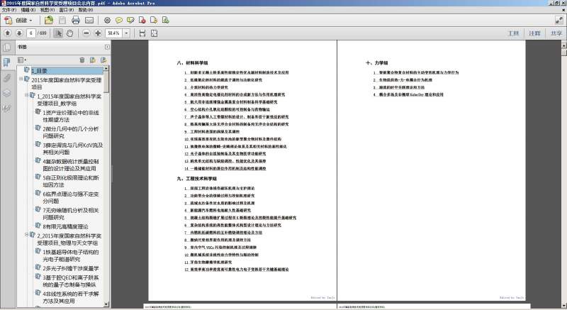 2015年度国家自然科学基金项目指南--工程与材料科学部 部分