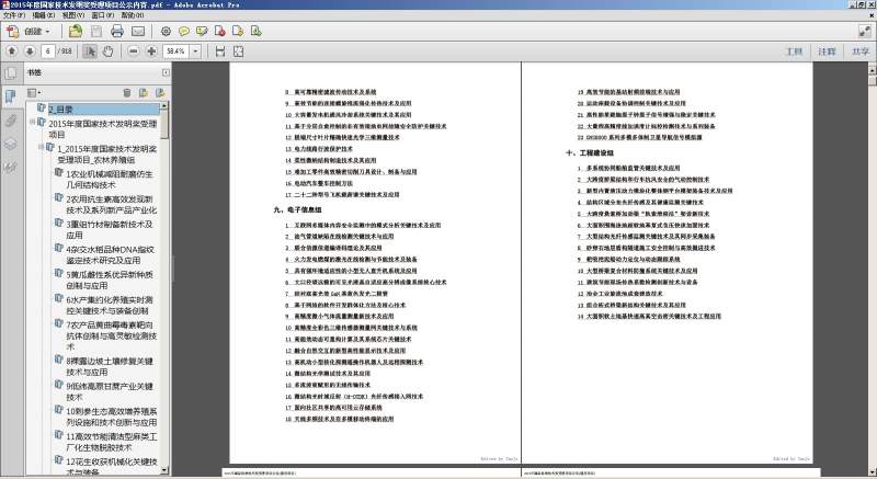 2015年度国家科学技术奖励受理项目公布之项目简介-整理版